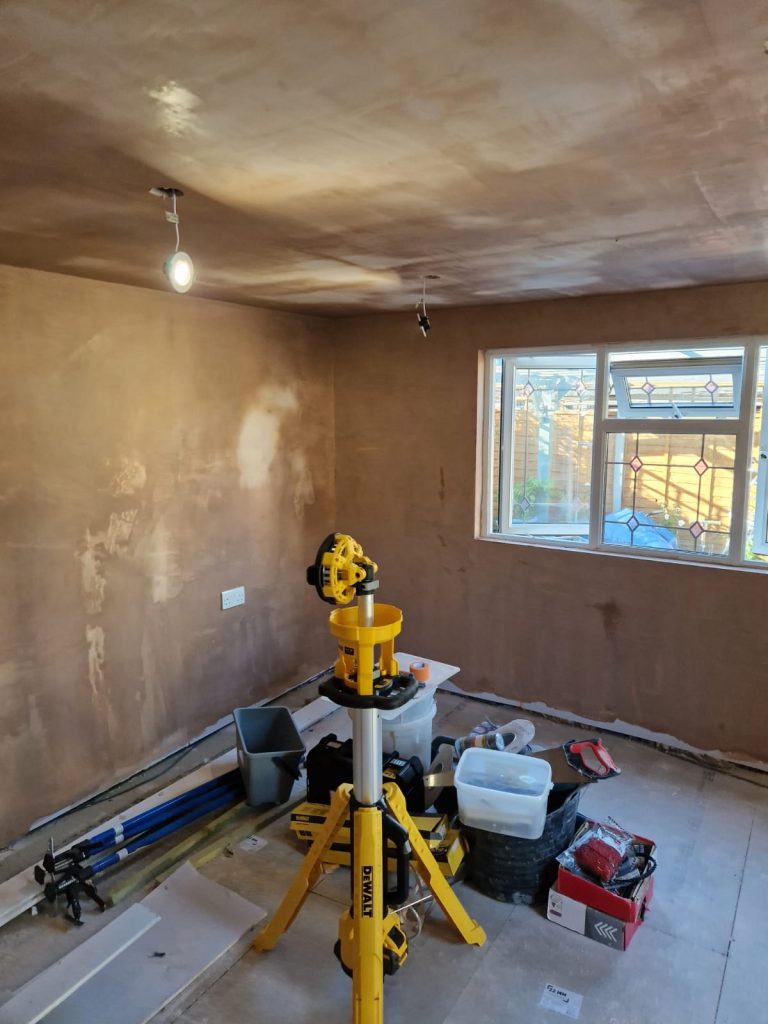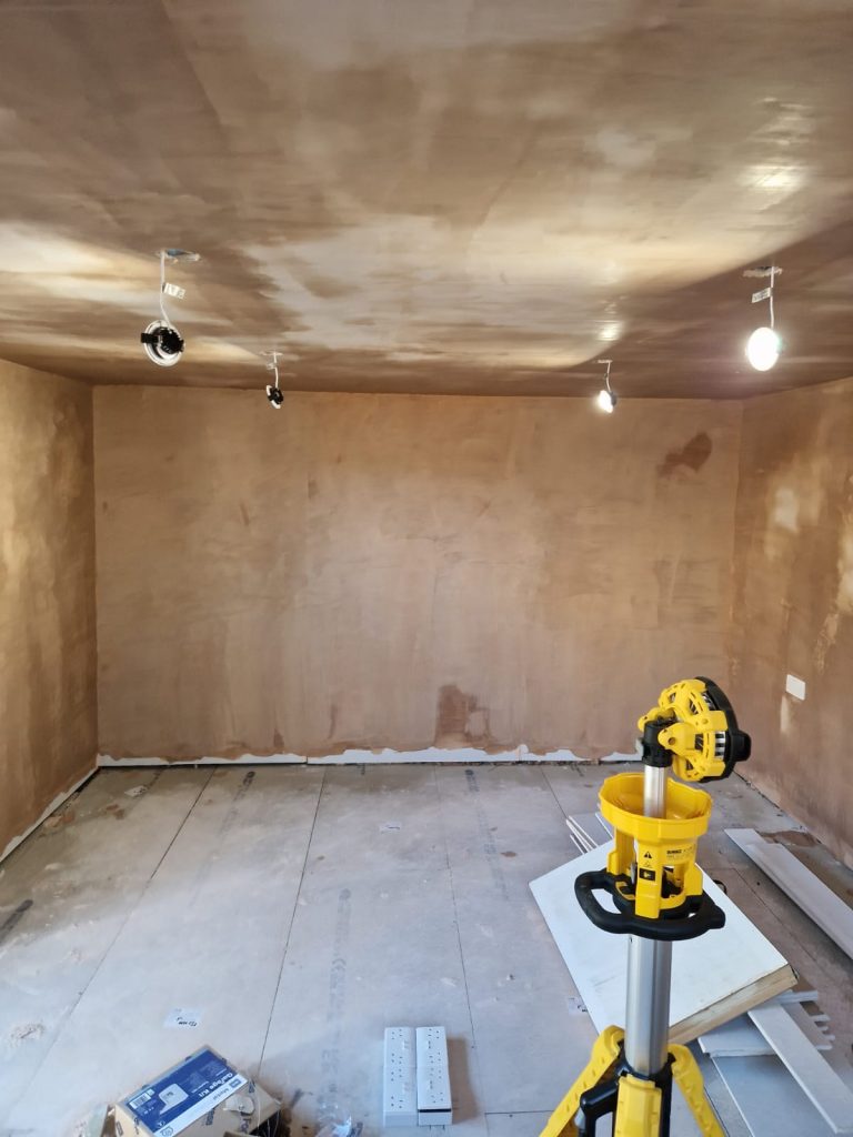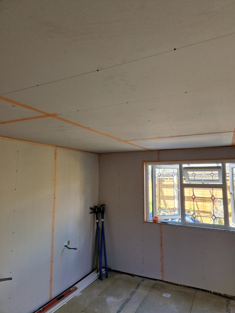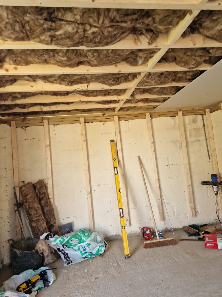 Lake Twins Construction converted this cold and dark garden room, into a warm, bright and airy garden office. Increasing the ceiling height, fully insulating and adding a new electric supply gave the foundation for a great office space. Then plastering, decorating and laying a new floor completed this modern work space which the customer was thrilled with.
