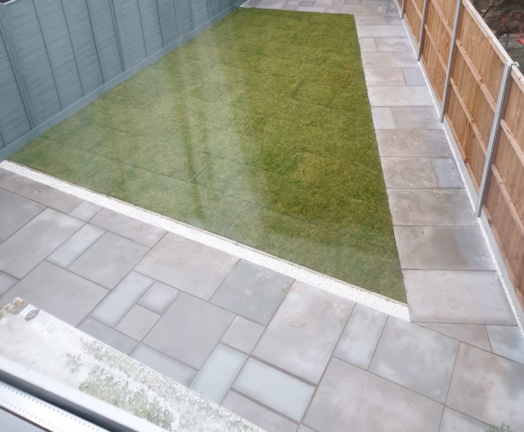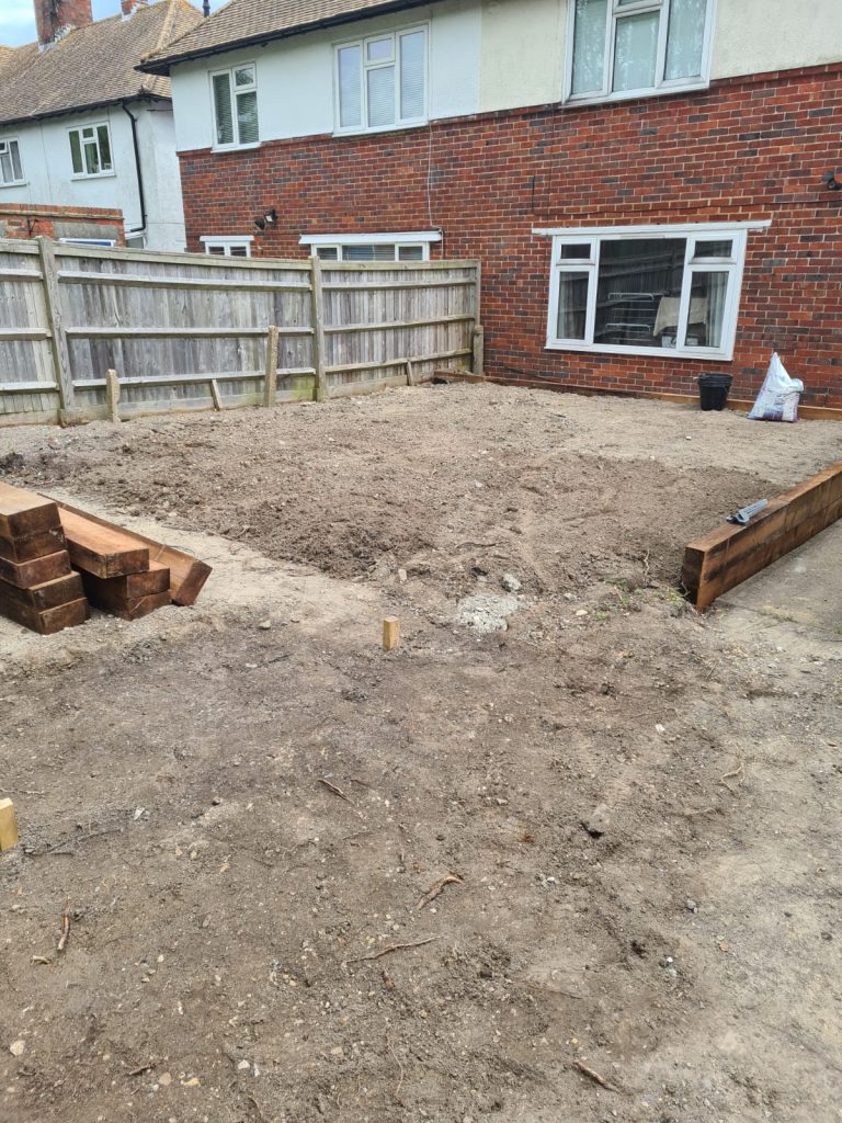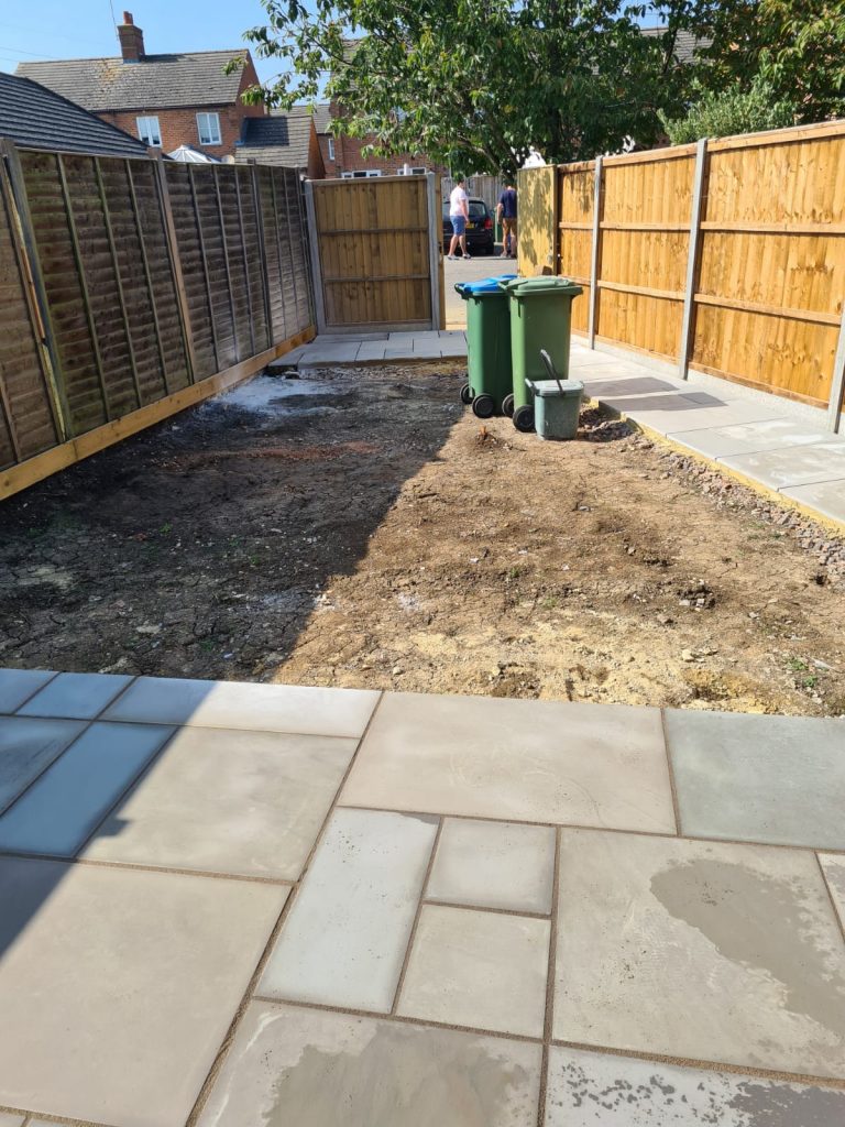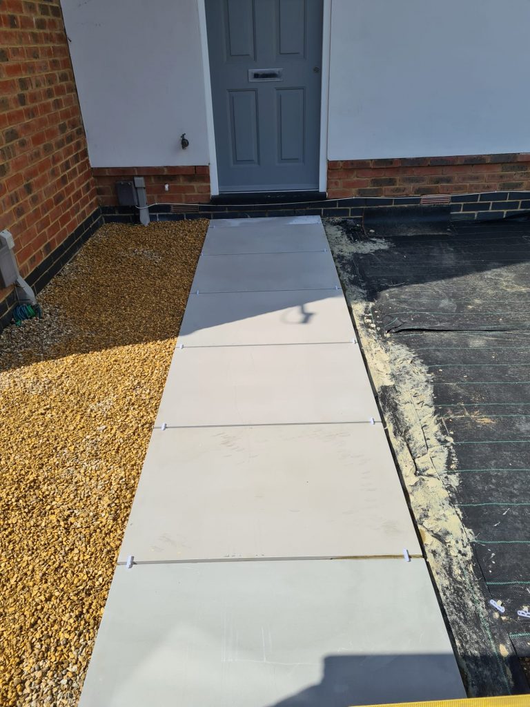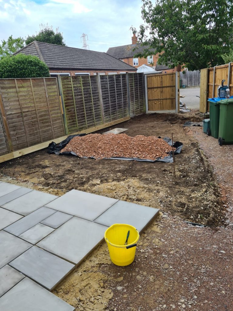 We built a sleek patio with a solid base for a greenhouse in East Sussex. First we cleared the area then dropped a concrete foundation strong enough for heavy greenhouse frames. After that we installed smooth yellow stone paving – clean lines, great finish, all ready for garden life.